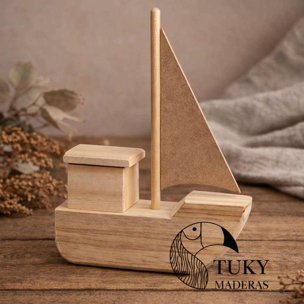 Barcos hechos de madera de pino y vela en mdf
